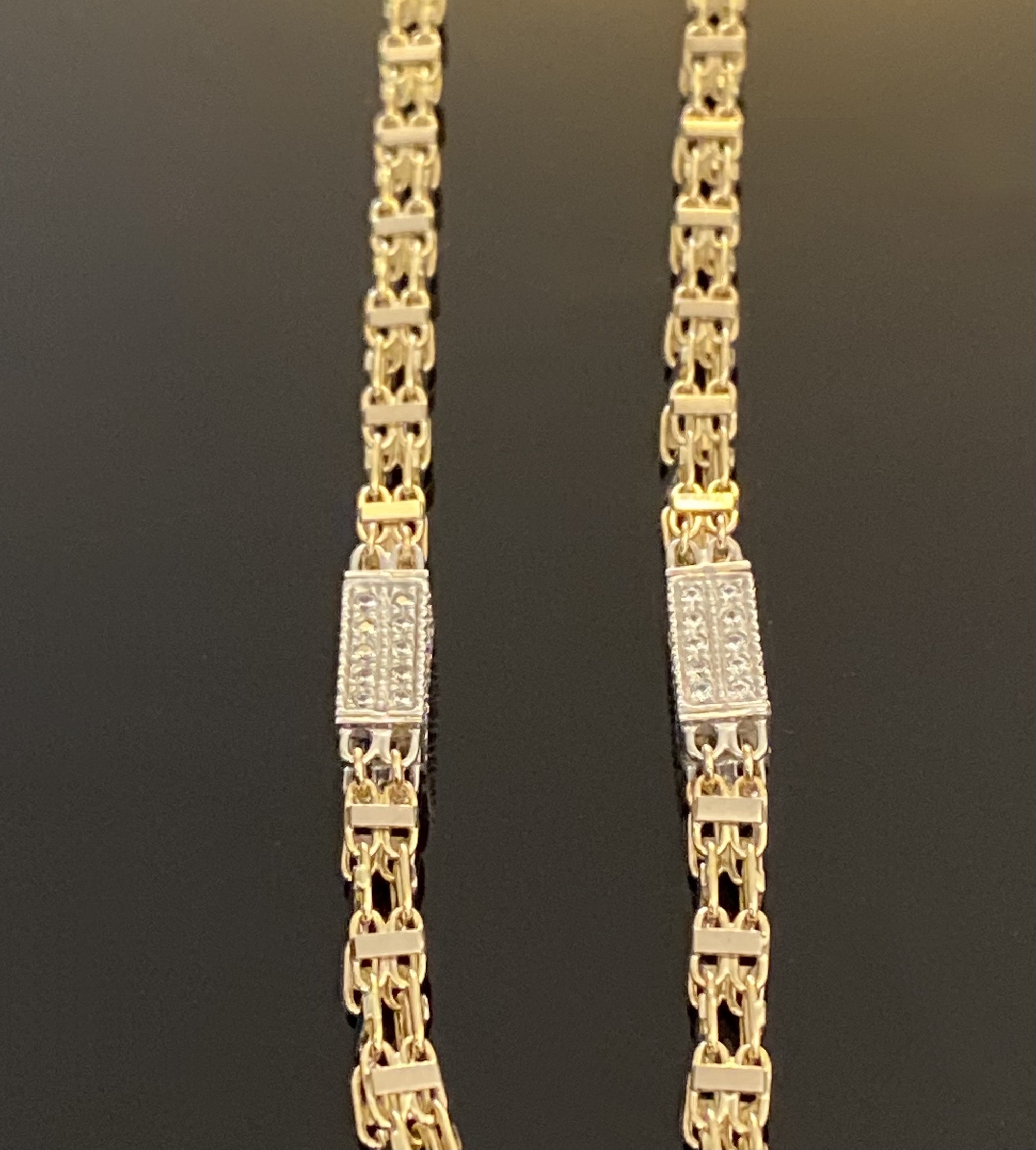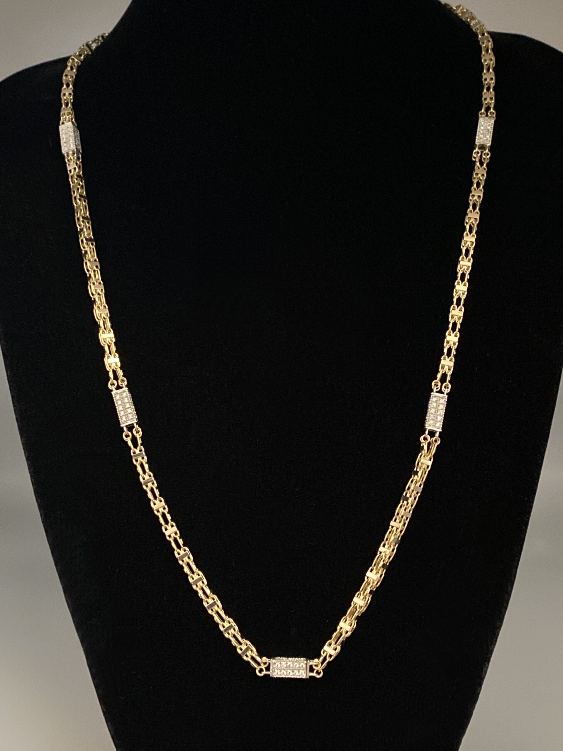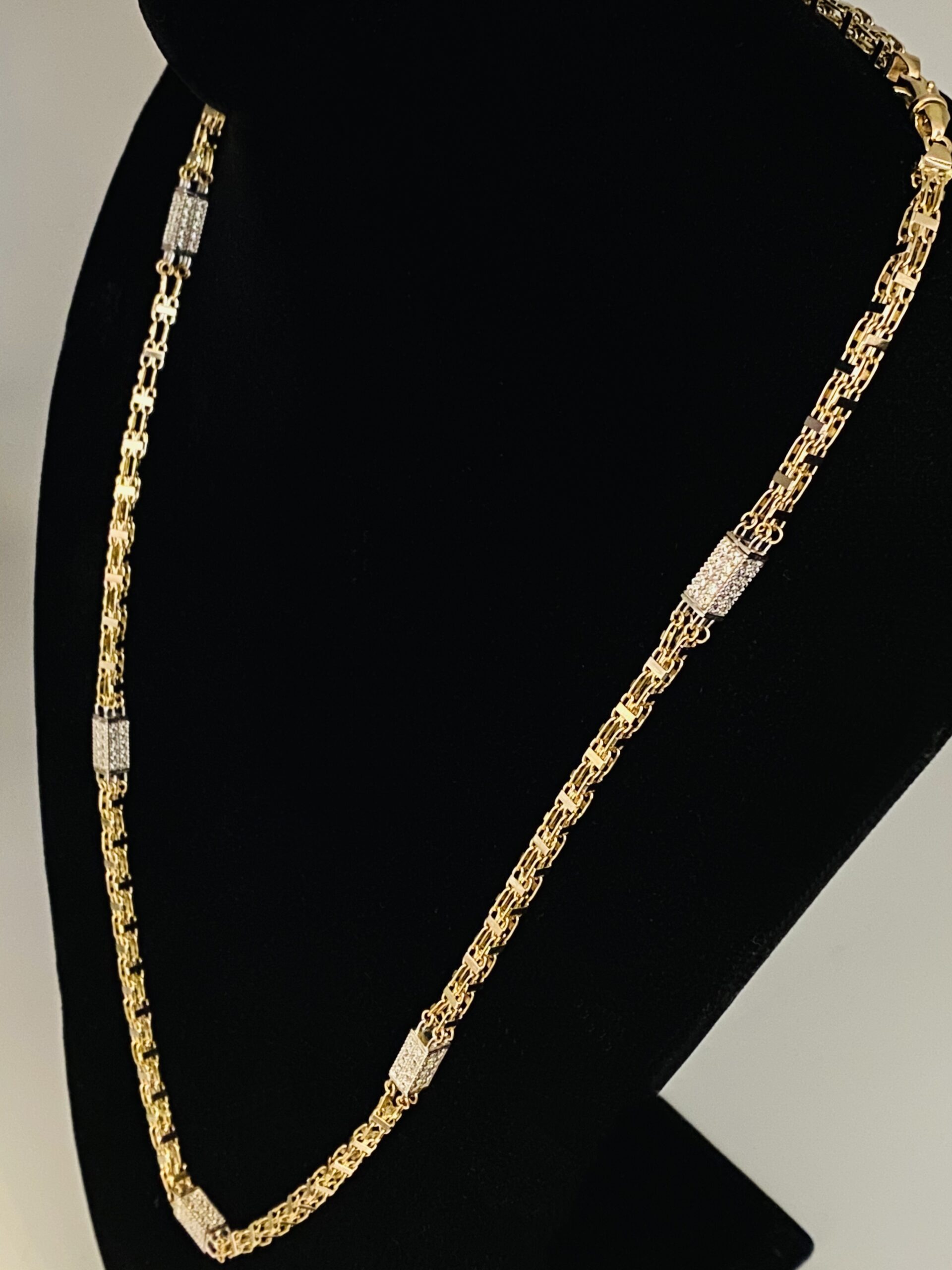 Wunderschöne Käfigkette / Magnumkette aus 585/14 Karat Gelb Gold mit funkelnden Zirkonia Steinen besetzt. Stylish und Millimeter genau verarbeitet.