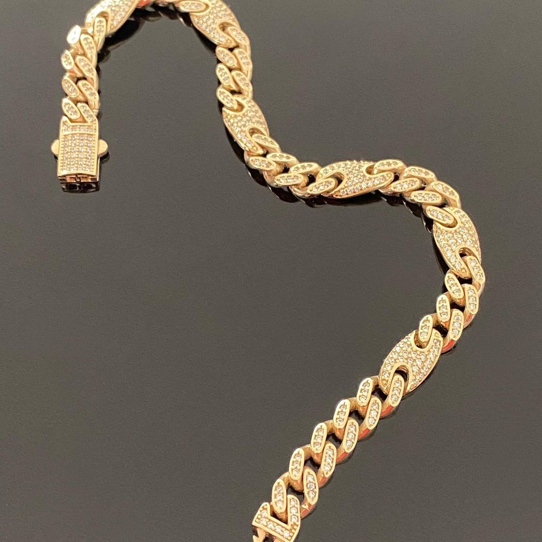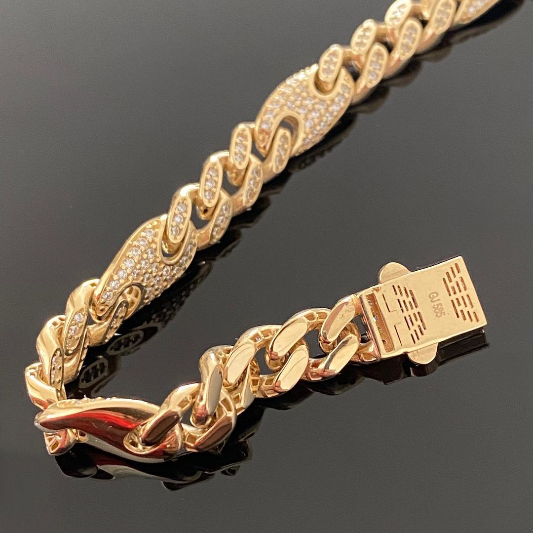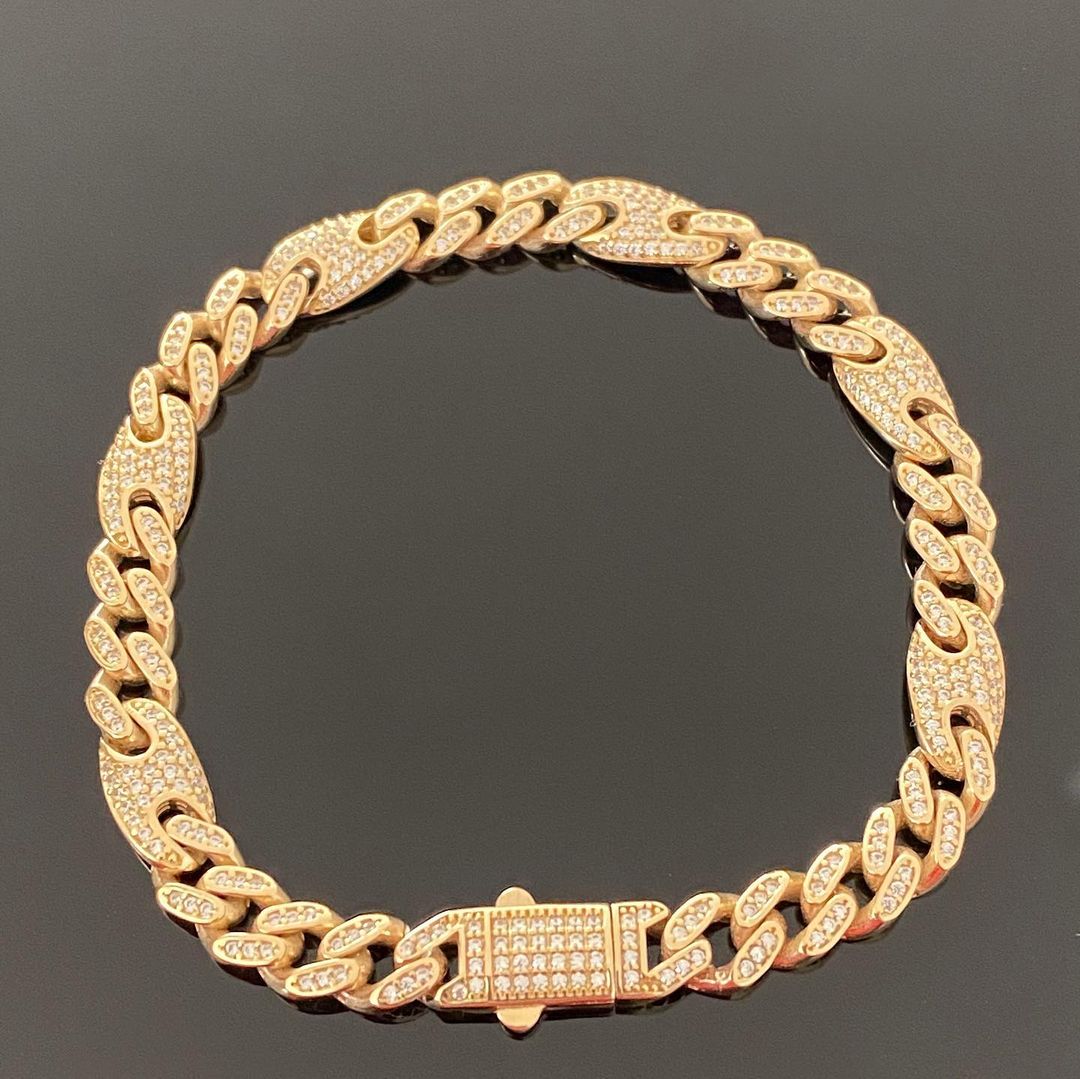 Prächtiger Gold Panzer Armband cuban iced out aus 585/14 Karat Gelb Gold. Wunderschön verarbeitet. Mit funkelnden Zirkonia Steinen besetzt. Ein echter Hingucker