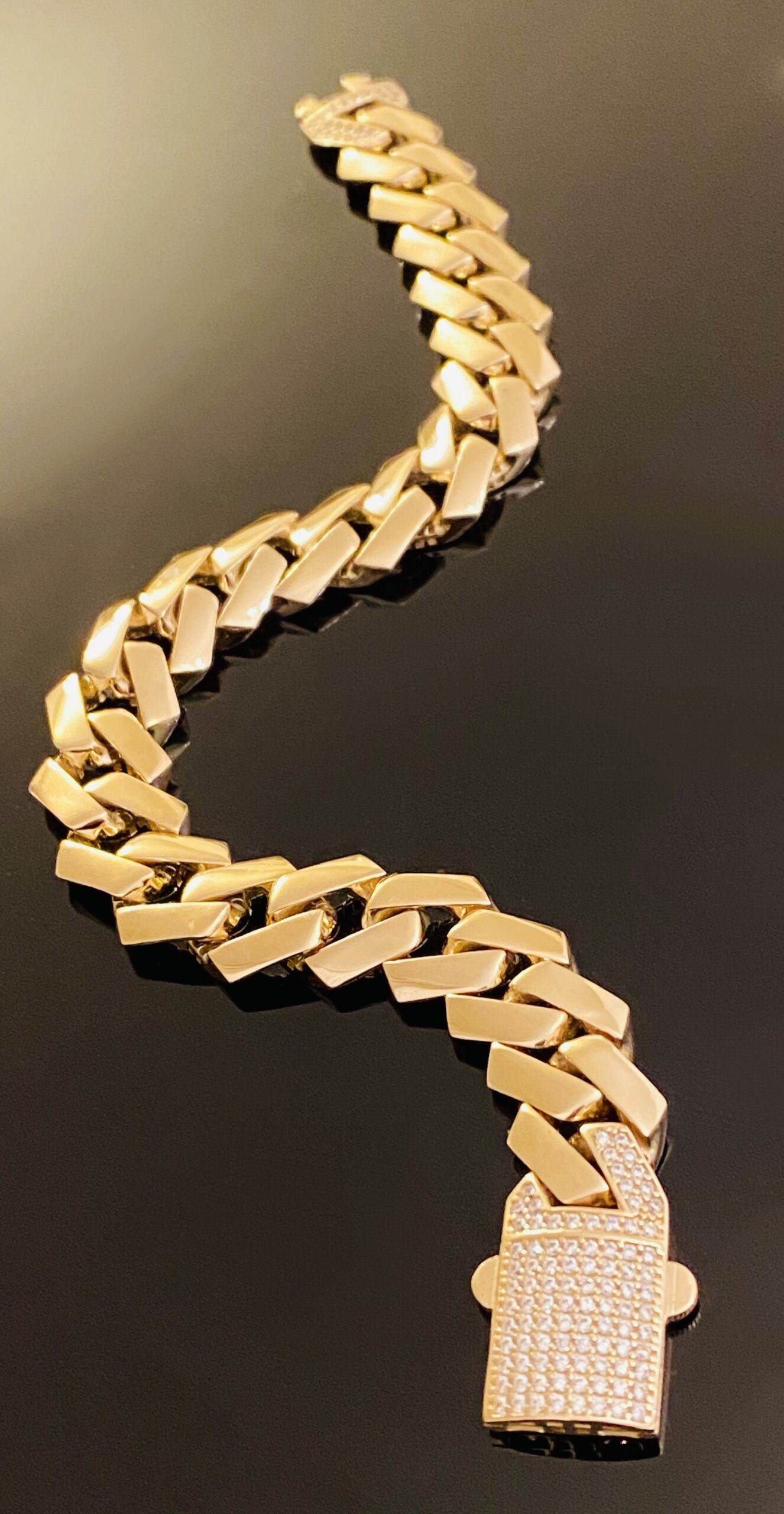 Panzerarmband Cuban Link aus 585/14 Karat Gelb Gold. Wunderschön und Millimeter genau verarbeitet.