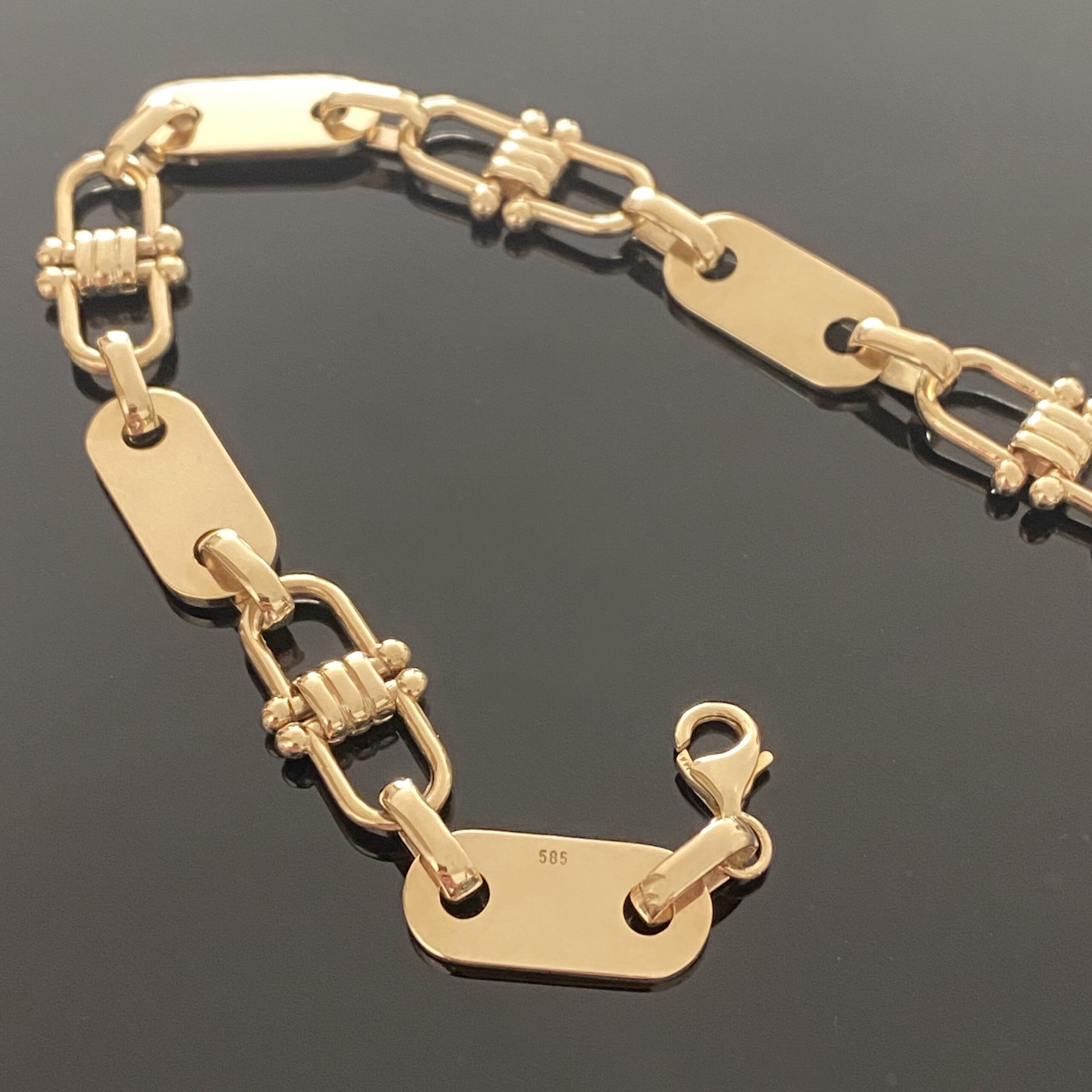 Plattenarmband mit Steigbügel 585/14 Karat Gelb Gold