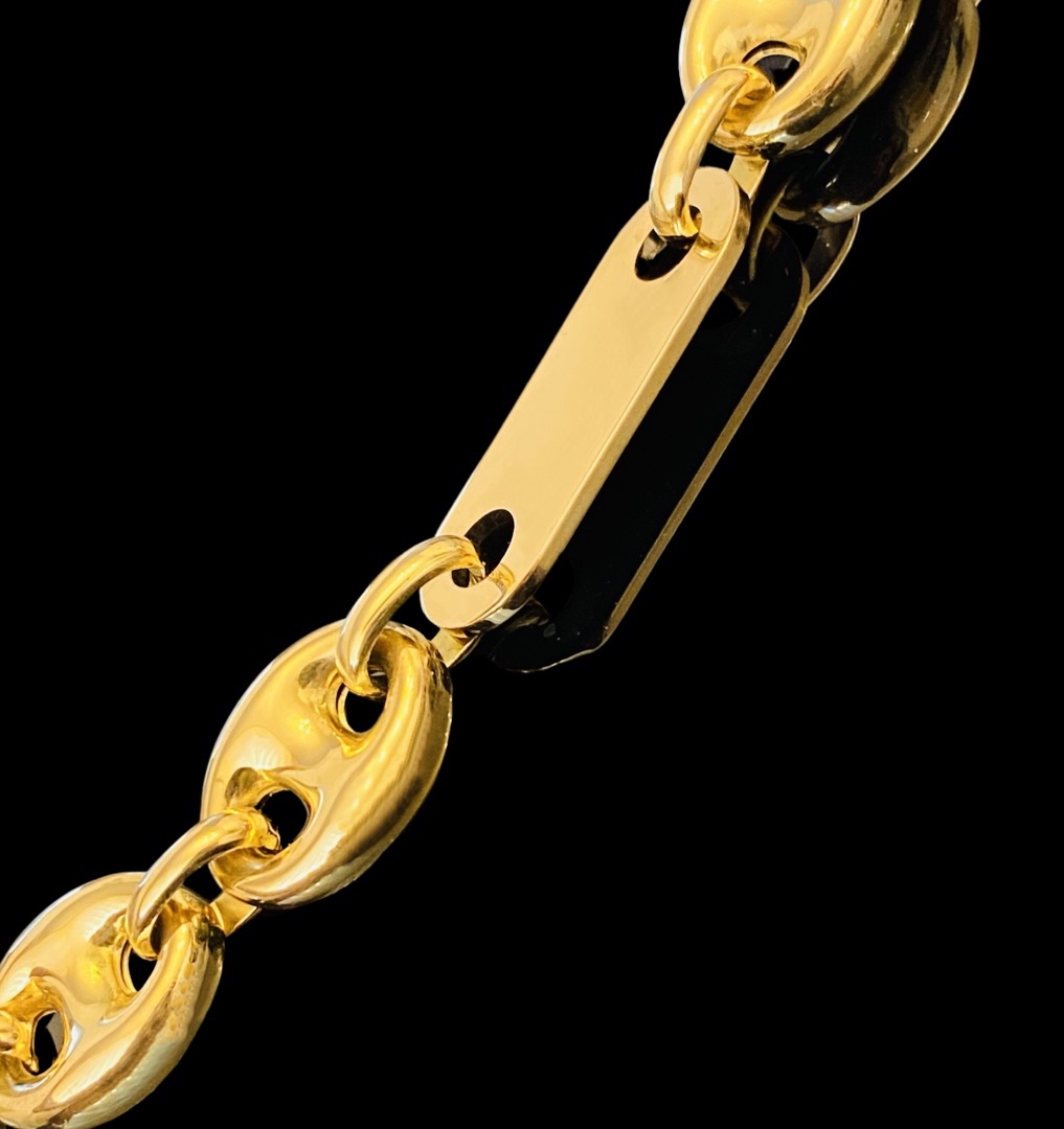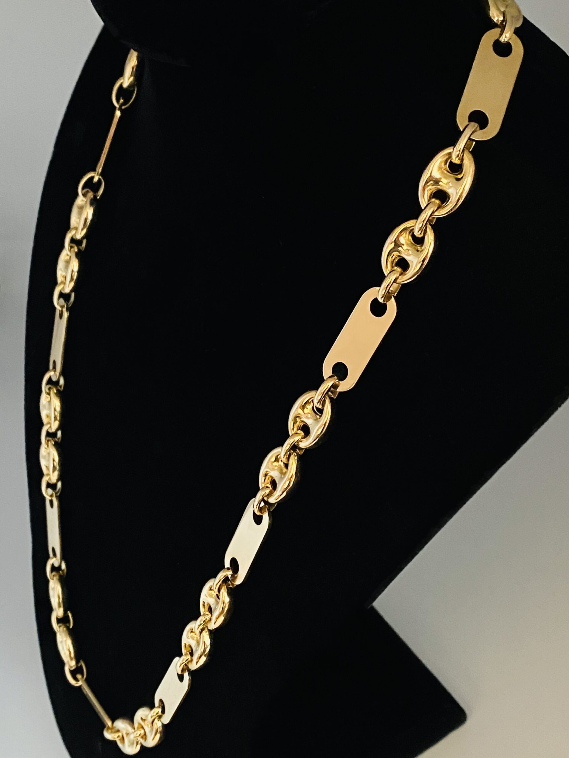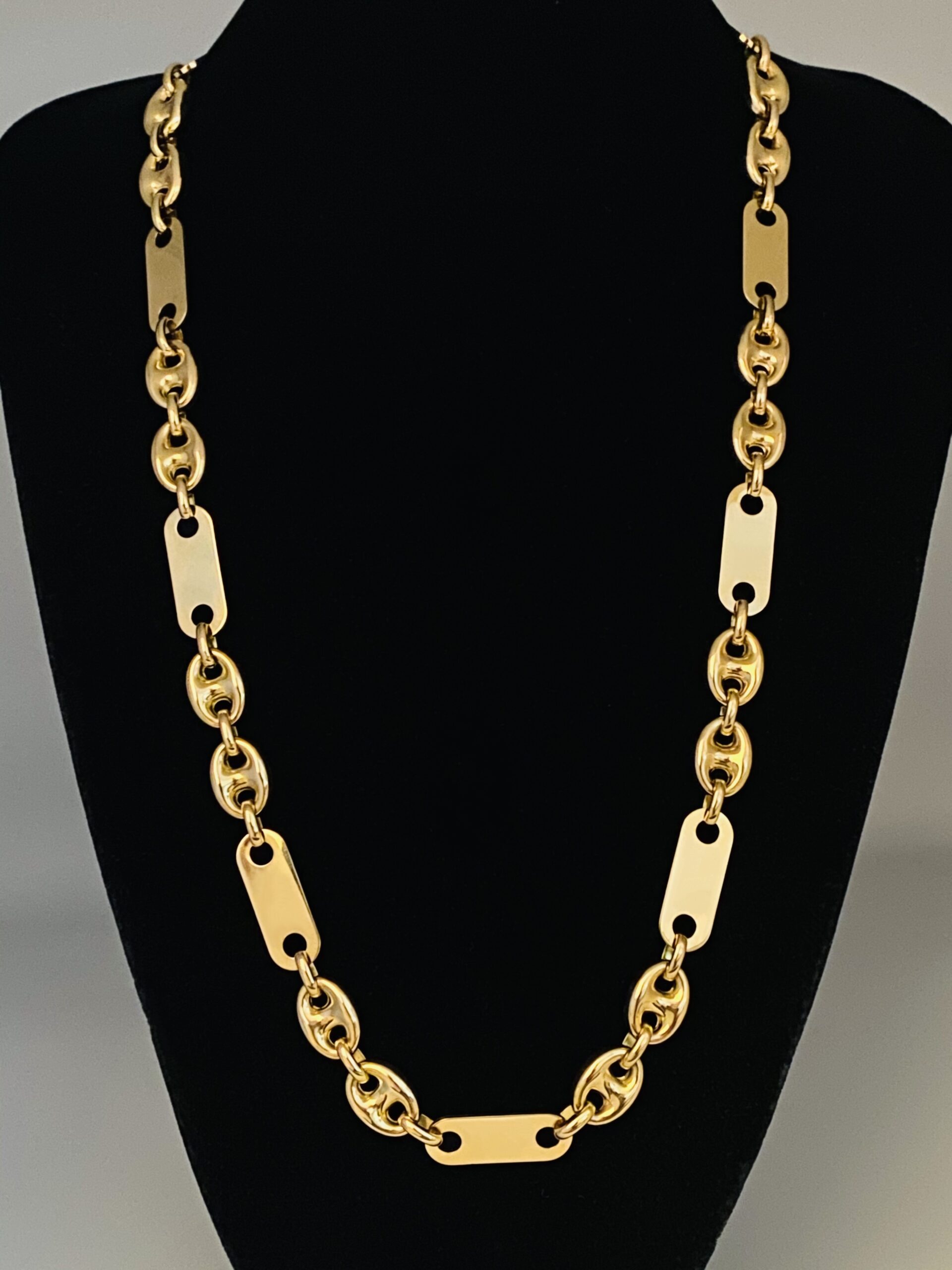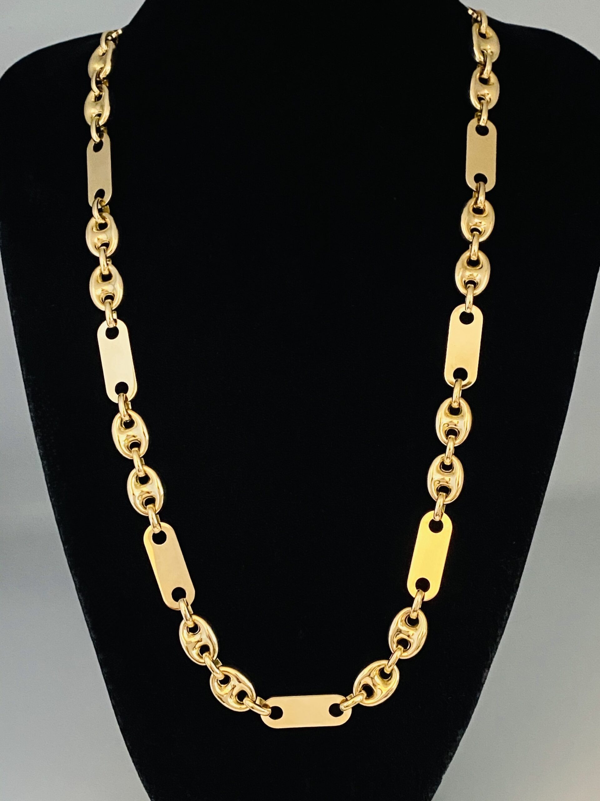 Maskuline Platten -Bohnen Kette aus 750/18 Karat Gelb Gold . Stylish und Millimeter genau verarbeitet.